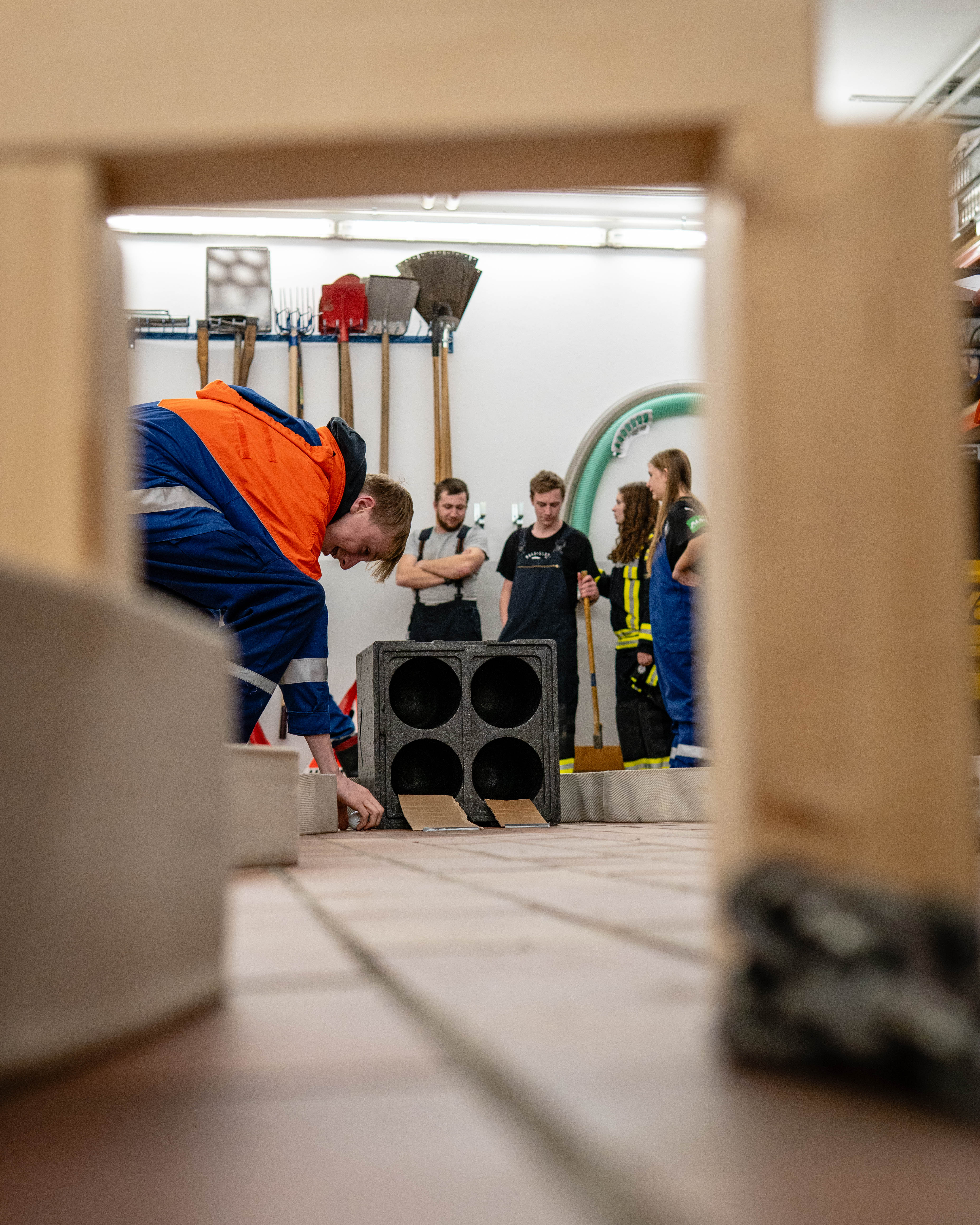 Angehörige der Jugendfeuerwehr beim Löschangriff