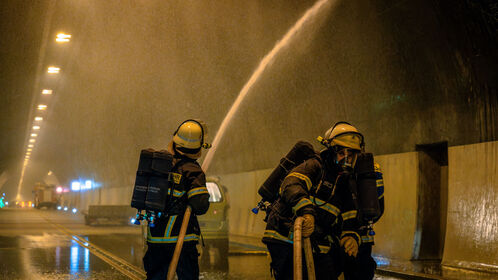 Brände in Straßentunneln stellen die Einsatzkräfte immer vor besondere Herausforderungen. Hitze und Rauch erschweren die Arbeitsbedingungen, es müssen weite Wegstrecken zurückgelegt werden, das Feuer muss rasch gelöscht werden und möglicherweise benötigen noch eingeschlossene Verkehrsteilnehmer dringend Hilfe der Atemschutzgeräteträger.